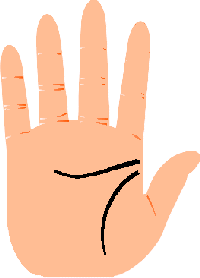 Palmistry.Net: Heart with Head Line (Curve Upwards / Slopes Down / Very large Gap)