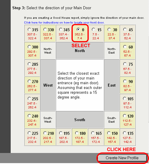 • Step 3: Ignore this selection for Good House Report as you do not know what is your main door direction.
